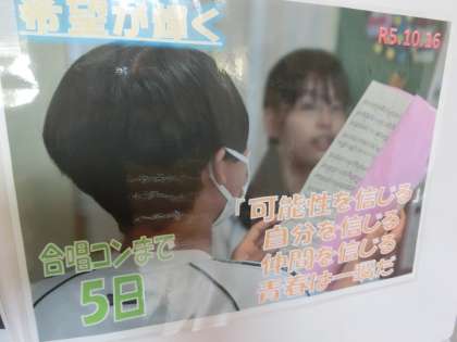 10/16 合唱コンまで あと5日! 公開日 2023/10/16 更新日 2023/10/16 校長室から 合唱コンクール本番まで、あと5日です! ■ 笑顔が輝く 音が合った! 楽しい! きれいなハーモニーになった! 楽しい! 聞いてくれた人を笑顔にできた! 嬉しい!