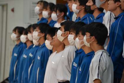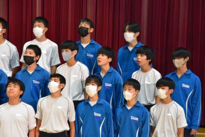 観客(学年の他のクラス生徒)を前に、初めて披露するクラス合唱。少々緊張気味の発表となりましたが、他のクラスからも刺激をもらいながら、残り一週間の練習時間を有効に活用していけそうです。