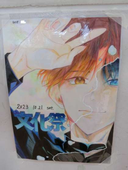 1棟西の階段の踊り場に文化祭のポスターが掲示されました。美術部の生徒たちによって制作されたものです。個性的で力作ばかりです。