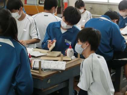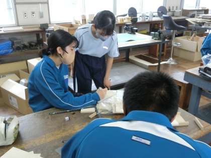 10/17 イメージどおりの作品になるか 4 公開日 2023/10/17 更新日 2023/10/17 各学年から 1年2組の技術科の授業の様子です。 木製品づくりにおいて、まずは構想やイメージを決定していきます。それを学習用タブレット内で3D(立体)図形に表していきます。次に寸法を決め、それをもとに切断線を描く作業(けがき)に移ります。それぞれが自分のイメージする作品に近づけようと、一生懸命作品づくりに取り組んでいました。