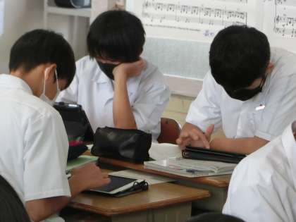 ジャンプ課題の「中部地方をPR!」のプレゼン大会を次回に控え、資料映像や発表原稿をグループごとに完成させていました。また、いかに分かりやすく発表するかの練習も、急ピッチで行われていました。