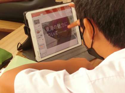 ジャンプ課題の「中部地方をPR!」のプレゼン大会を次回に控え、資料映像や発表原稿をグループごとに完成させていました。また、いかに分かりやすく発表するかの練習も、急ピッチで行われていました。
