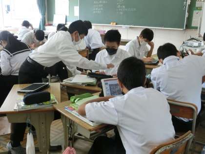 ジャンプ課題の「中部地方をPR!」のプレゼン大会を次回に控え、資料映像や発表原稿をグループごとに完成させていました。また、いかに分かりやすく発表するかの練習も、急ピッチで行われていました。