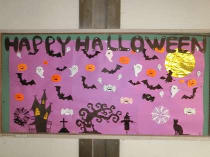 10/17 ハッピー・ハロウィーン 公開日 2023/10/17 更新日 2023/10/17 特別活動 有志の生徒たちが文化祭を前に、ハロウィーンの掲示物を作成してくれました。1棟から2棟につながる渡り(校長室前)の掲示板が一気にお祭りの雰囲気になりました。 たった数日で仕上げた生徒の行動力とセンスに脱帽です!