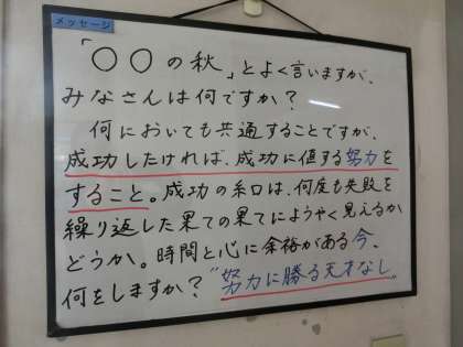 大きな行事が終わり、学校生活に落ち着きが戻って来た今、何をしていくべきかを考えさせる内容です。
