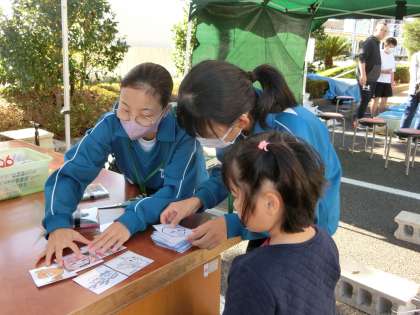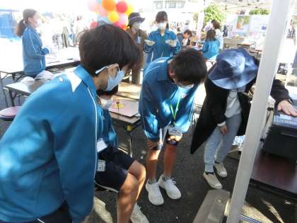 10/29(日)、若林交流館で開催された「若林地区ふれあいまつり」に参加したボランティア生徒の活動の様子です。