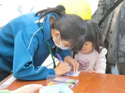 10/29(日)、若林交流館で開催された「若林地区ふれあいまつり」に参加したボランティア生徒の活動の様子です。