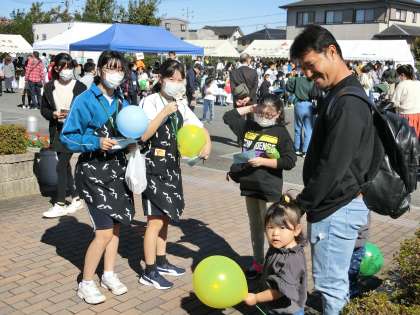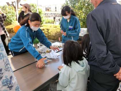 10/29(日)、若林交流館で開催された「若林地区ふれあいまつり」に参加したボランティア生徒の活動の様子です。