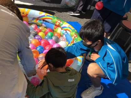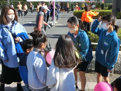 10/29(日)、若林交流館で開催された「若林地区ふれあいまつり」に参加したボランティア生徒の活動の様子です。