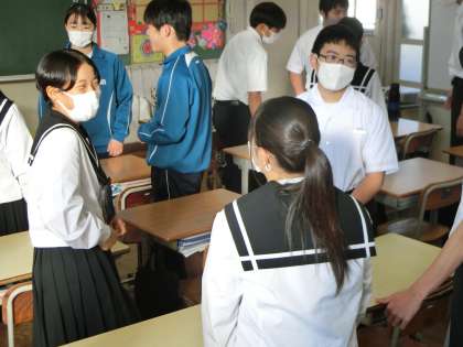 今回は、「うちの学校でも、ぜひ始めたい」ということで、市内の小中学校の先生方に様子を見ていただきました。生徒たちはいつもどおりの様子でしたが、「生徒の距離も近く、しっかり目を見て話を聴いていますね」との言葉をいただきました。