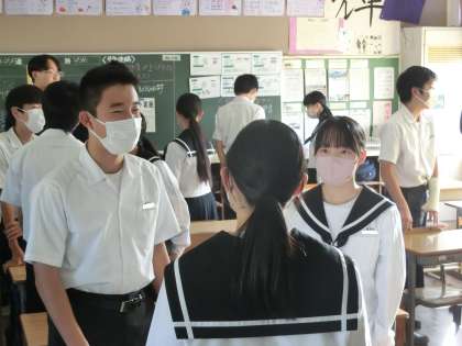 今回は、「うちの学校でも、ぜひ始めたい」ということで、市内の小中学校の先生方に様子を見ていただきました。生徒たちはいつもどおりの様子でしたが、「生徒の距離も近く、しっかり目を見て話を聴いていますね」との言葉をいただきました。