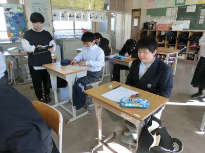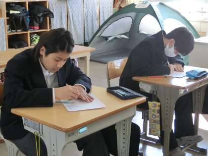 写真は、1,2学級の国語で、文化祭を終えての思い出作文に取り組んでいました。