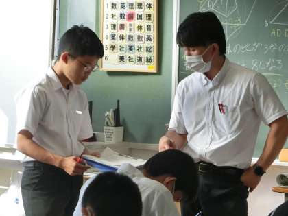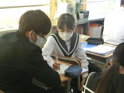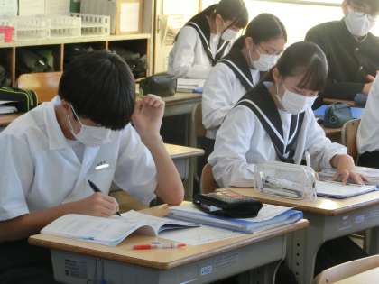 写真は3年4組の数学です。「相似」の学習で「角の二等分線」が条件の場合の問題を解いていました。
