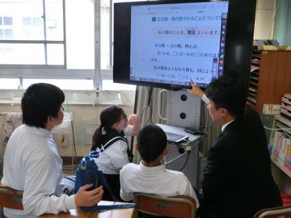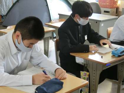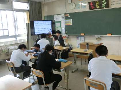 各自の課題に取り組んでいました。大型テレビで自分の考え方を発表したり、プリントの演習問題に挑戦し続ける生徒などさまざまです。それぞれが時間いっぱい集中して取り組んでいた様子に感心しました。