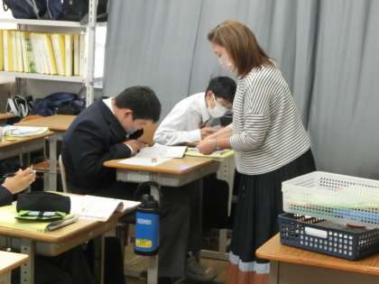 「故事成語」について学んでいました。学習用のプリントには、意味のみが書かれています。どんな故事成語を表しているのか、必死に探していきます。20問はなかなか大変な問題数でしたが、途中であきらめることなく、しっかりと学習に向かっていました。