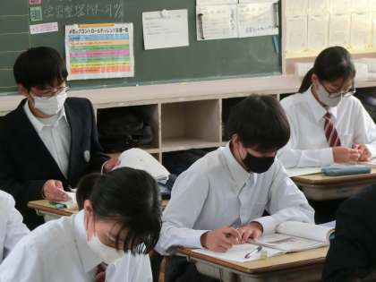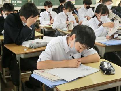 「比例の式を求めよう」をテーマに学習が進められていました。これまで表から導き出していた式を、今回は文章題から求めていきます。しっかり理解していること、途中の計算でミスをしないことなど、少しずつ条件が増え、難易度も上がっていきます。