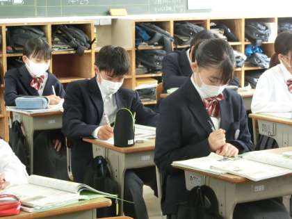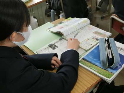 昨日の1年5組の社会・地理分野の授業の様子です。