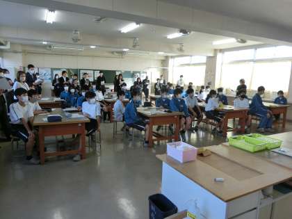 *今回は、研究授業ということで本校全職員に加え、家庭科の教科指導員、市内中学校の家庭科の先生方にも参加いただきました。