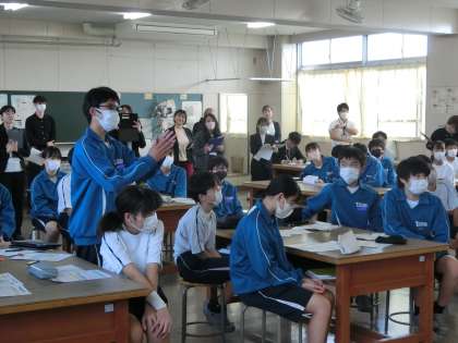 *今回は、研究授業ということで本校全職員に加え、家庭科の教科指導員、市内中学校の家庭科の先生方にも参加いただきました。