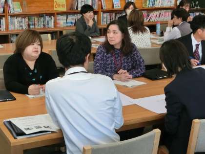 研究時授業の後に行われた研究協議会(先生たちの勉強会)の様子です。生徒に負けず、活発な話し合いが行われました。