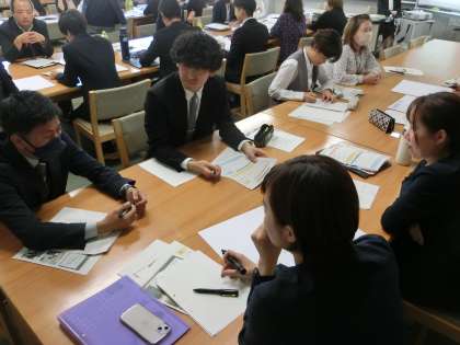 研究時授業の後に行われた研究協議会(先生たちの勉強会)の様子です。生徒に負けず、活発な話し合いが行われました。
