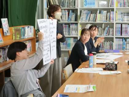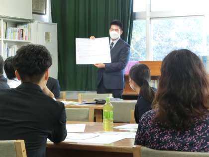 研究時授業の後に行われた研究協議会(先生たちの勉強会)の様子です。生徒に負けず、活発な話し合いが行われました。