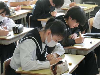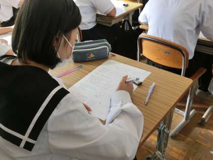 「関数」の単元のまとめのテストに取り組んでいました。定期テストの出題範囲であるため、事前の学習もしっかりと行えているようです。理解の不十分なところを確認するなど、直前の勉強にも活かしてほしいと思います。