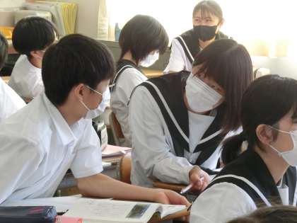 「モアイは語る—地球の未来」の単元で、「モアイを作った文明はどうなったか?」をテーマに学習が進められていました。終盤では深刻な人口爆発にも触れ、地球の未来についても考えを深めていました。
