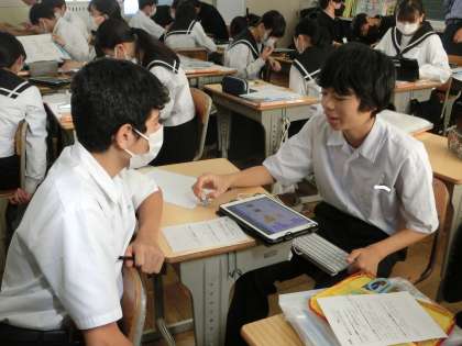11/9 近未来アプリのアイデア 3 公開日 2023/11/09 更新日 2023/11/09 各学年から 2年3組の国語の授業の様子です。 「モアイは語る—地球の未来」の単元で、「モアイを作った文明はどうなったか?」をテーマに学習が進められていました。終盤では深刻な人口爆発にも触れ、地球の未来についても考えを深めていました。