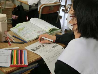 「北海道地方を知ろう」をテーマに学習が進められていました。寒さや火山と共に生きる工夫であったり、豊かな海を生かした生活などを学んでいました。映像を食い入るように見る様子が印象的でした。