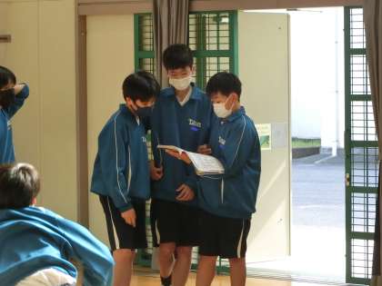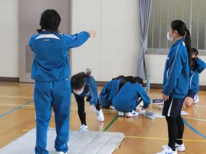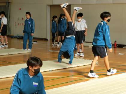力試しということで、それぞれができる種目の確認をしていました。グループ内でアドバイスをしようと仲間の様子をよく見ています。今後練習を積んで、これまでの自分を超える技能を身につけてほしいと思います。