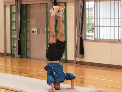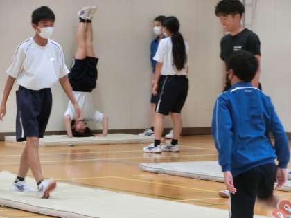 先週、紹介できなかった授業の様子をお届けします。 写真は、2年4・5組の体育の授業の様子です。