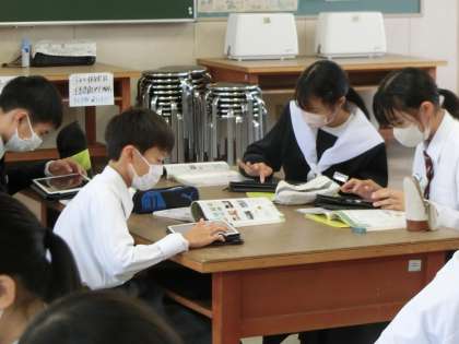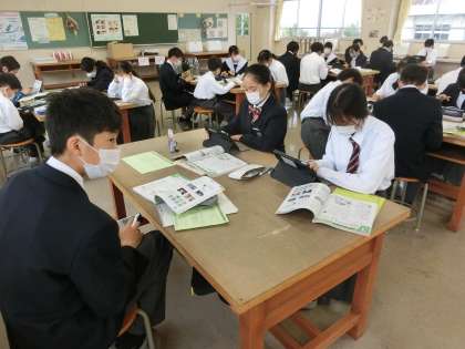 先週、紹介できなかった授業の様子をお届けします。 写真は、1年3組の家庭科の授業の様子です。