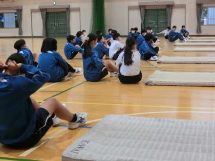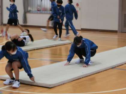 先週、紹介できなかった授業の様子をお届けします。 写真は、1年1組の体育の授業の様子です。