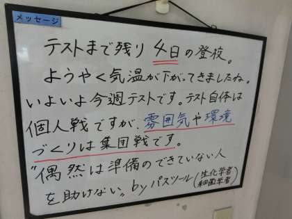 いよいよテストの週に入ったこともあり、本番を迎えるにあたっての心構えが書かれていました。