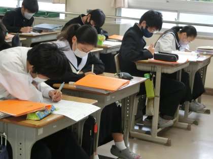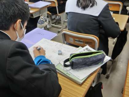 間近に迫ったテストに向け、弱点の確認と克服です。教科担任の用意した要点別のプリントを必死に解いていました。本番では蓄えてきた力を十分に発揮してほしいと思います。