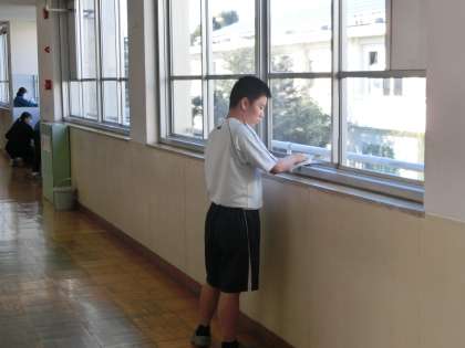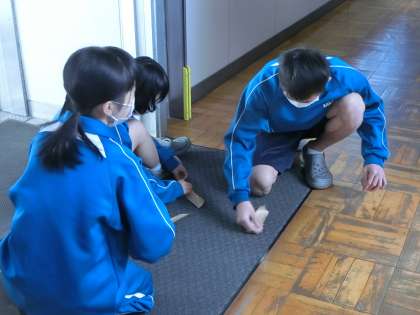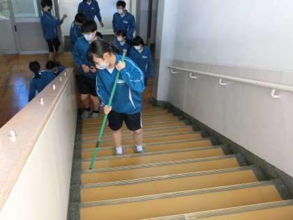先週から始まった「テスト・教育相談週間」。この期間は教育相談時間の確保のため、掃除の時間が設定されていません。しかし… 3年生は外庭以外の通常の清掃場所で活動しています。