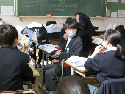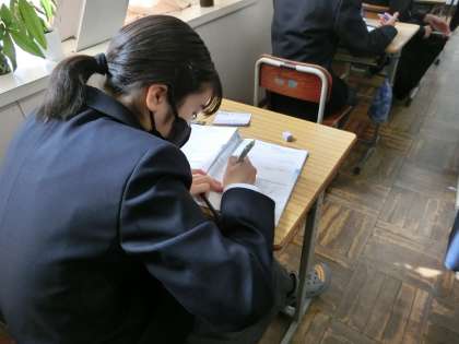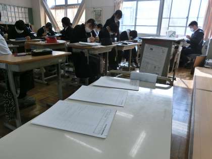 定期テストの出題範囲となる単元のプリントが用意され、直前の総復習に取り組んでいました。テストで納得のいく点数を取ろうと、誰もが必死です。