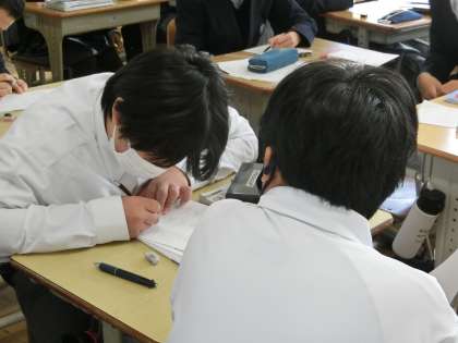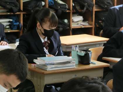 定期テストの出題範囲となる単元のプリントが用意され、直前の総復習に取り組んでいました。テストで納得のいく点数を取ろうと、誰もが必死です。