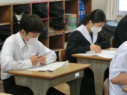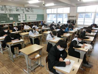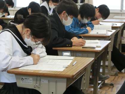 テスト初日の2年1組の様子です。