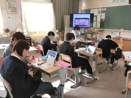 12月に行われる小中交流会に向けての招待状づくりです。お招きする予定の小学生たちが楽しみにしてくれるよう、デザインやメッセージなどいろいろと考えて作っていました。