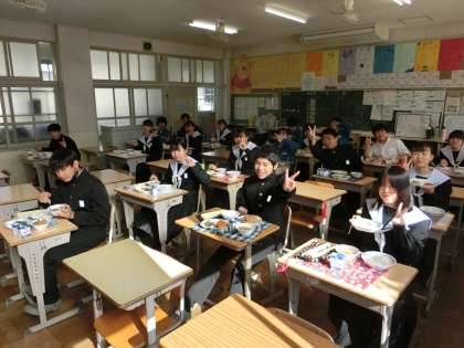 3日間のテストのすべての日程を終え、給食の時間を迎えた3年生。給食後は下校ということもあり、開放感が表情によく出ています。