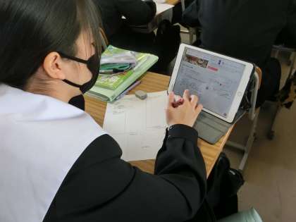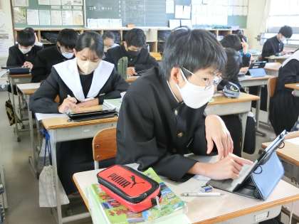 昨日の2年5組の社会・地理分野の授業の様子です。