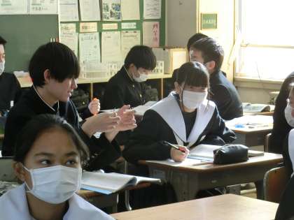 松尾芭蕉の「奥の細道」を題材に、「作者の思いを想像しよう」をテーマに学習が進められていました。自分の考えを仲間に伝え合っていきます。根拠や理由もしっかり述べようと真剣に取り組んでいました。