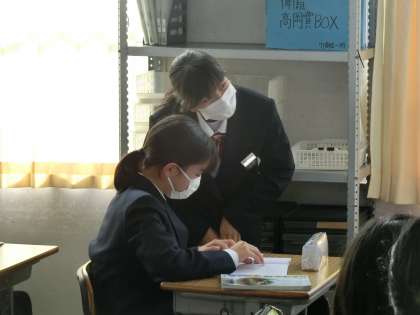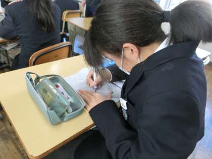 「凸レンズでできる像の作図」をマスターするため、様々なパターンの問題に取り組んでました。仲間に教えたり教えてもらったりしながら、クラス全員が確実に身につけようと必死に取り組んでいる様子が伝わってきました。