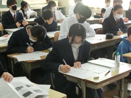 返却された定期テストの解説を聞きながら、間違えてしまった問題、理解が不十分だった問題の解き直しに取り組んでいました。年明けには学習診断テストがあります。正解でなかった問題をしっかりまとめておき、今後の学習に活かしてほしいと思います。