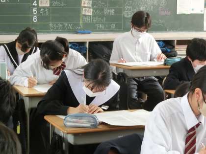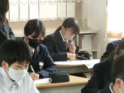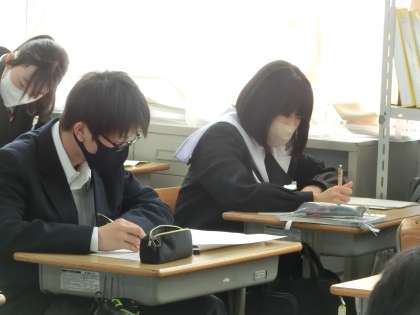 返却された定期テストの解説を聞きながら、間違えてしまった問題、理解が不十分だった問題の解き直しに取り組んでいました。年明けには学習診断テストがあります。正解でなかった問題をしっかりまとめておき、今後の学習に活かしてほしいと思います。