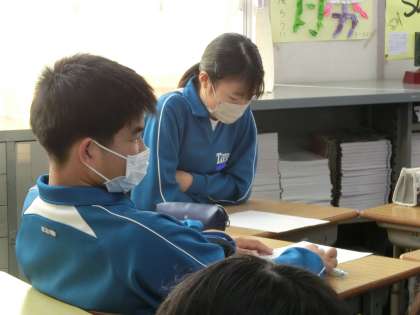 今回はこれまでと少し方法が変わり、4人グループになっての「いいとこみつけ」でした。ポイントは、「自分の良いところに気付く」でした。「いいとこみつけカード」に他の3人が良いところに印をつけていきます。その後、記入されたカードを見て、思ったことや巻子をグループで自由に話していきます。