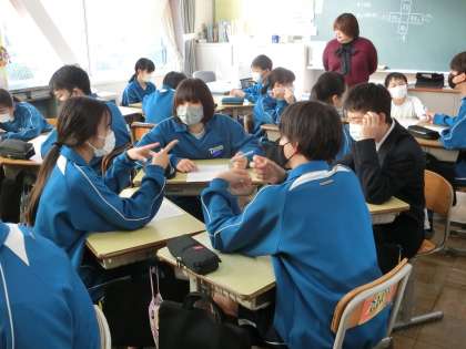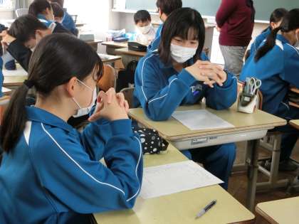 今回はこれまでと少し方法が変わり、4人グループになっての「いいとこみつけ」でした。ポイントは、「自分の良いところに気付く」でした。「いいとこみつけカード」に他の3人が良いところに印をつけていきます。その後、記入されたカードを見て、思ったことや巻子をグループで自由に話していきます。