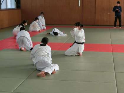 マット運動では、いよいよ練習成果の発表のタイミングが迫ってきており、仲間にアドバイスをもらいながら、一生懸命練習していました。また、柔道では、前回り受け身をマスターしようと何度も挑戦している様子が印象的でした。